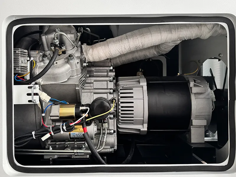 - Le générateur diesel silencieux offre une puissance fiable, grâce à un alternateur entièrement en cuivre avec un système de régulateur de tension automatique (AVR) qui garantit une excitation puissante et des fluctuations de tension minimales.