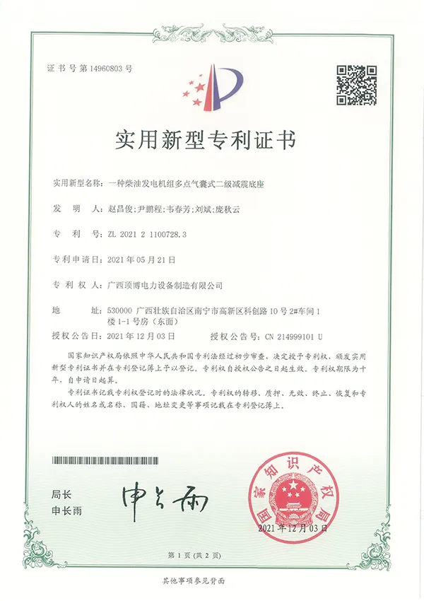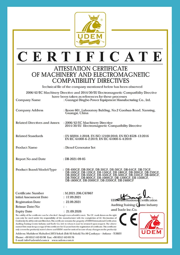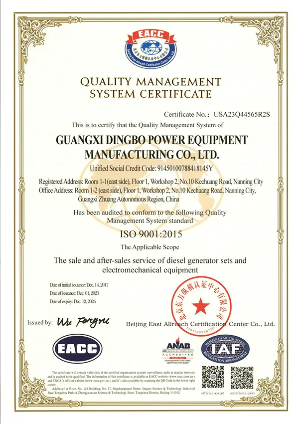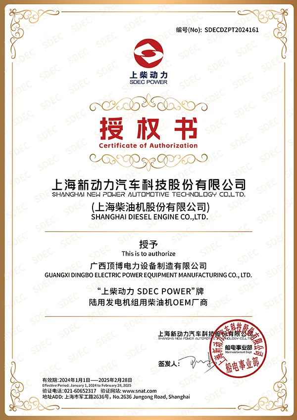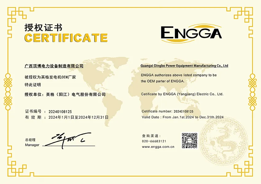DINGBO Power est un premier fabricant OEM des groupes électrogènes diesel, accumulant ainsi plus d’une décennie d’expérience. Notre société se distingue par ses capacités robustes dans la technologie de recherche et développement, comme cela est prouvé par les multiples certificats de brevet obtenus. Nous adhérons strictement aux normes nationales et de l’industrie, ce qui nous rassure que chaque groupe électrogène réponde aux exigences rigoureuses de la qualité, de la spécification et de la performance.